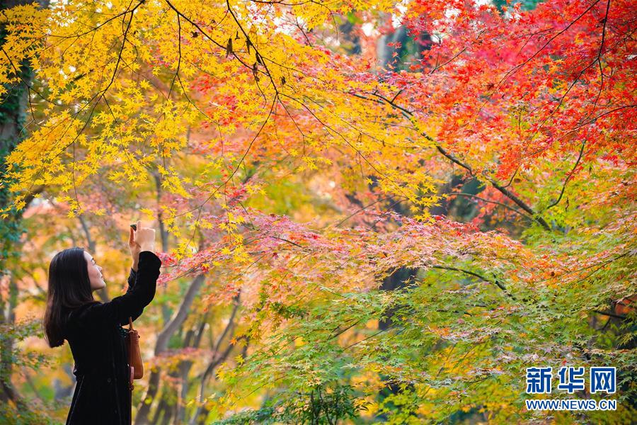 11月24日,游人在南京中山植物园欣赏枫叶。 新华社发(苏阳 摄)