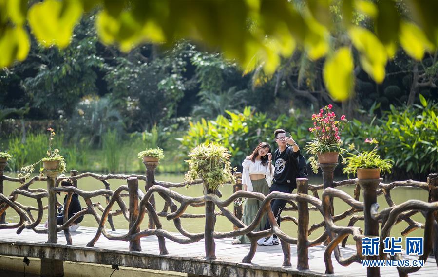 游客在景洪曼听公园游玩(12月2日摄)。 新华社记者江文耀摄
