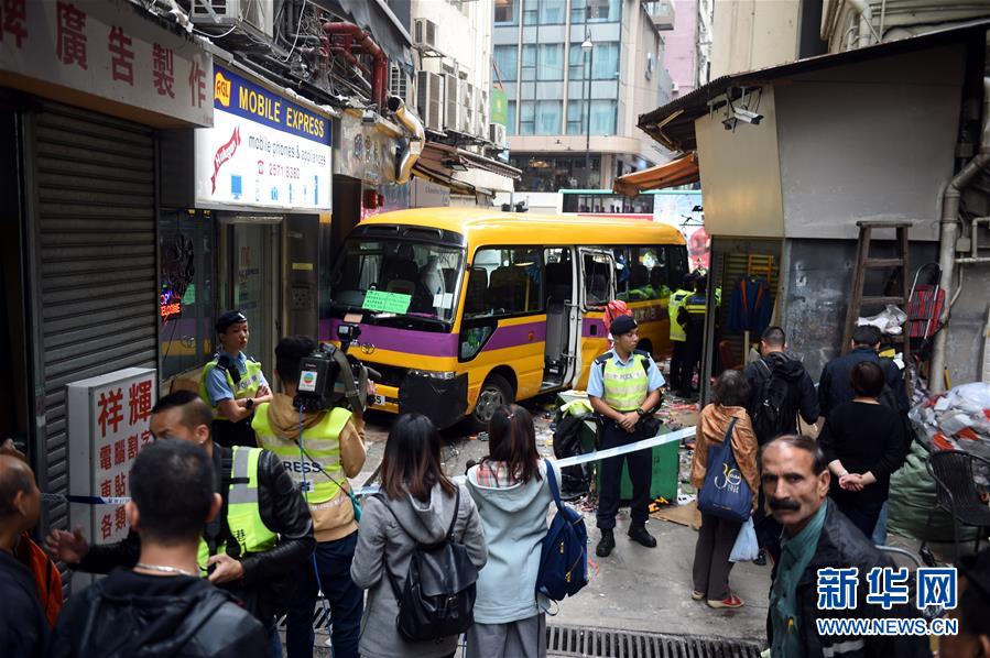 这是12月10日在香港北角拍摄的事故现场。 12月10日下午2时左右,香港北角发生车祸,一辆校巴冲上行人路,目前已致1人死亡,13人受伤。 新华社记者 卢炳辉 摄
