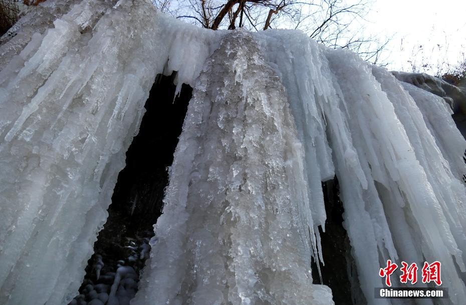 近日由于北京天气降温至—10摄氏度左右,山区更为严寒。在北京门头沟区王平镇山谷里,常年流动的山泉水凝结形成的巨大冰瀑,呈现北国景观,吸引游人前来观赏、拍照。图为12月10日,在北京市门头沟区王平镇山谷,山泉凝固形成的冰瀑,吸引市民前来观赏拍照。中新社发 李文明 摄 图片来源:CNSPHOTO