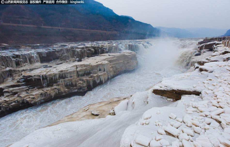 世界第一大黄色瀑布——山西壶口瀑布。黄河在此由河宽300米收窄为50米,飞流直下,骇浪翻滚,千军万马奔腾怒吼,声传数十里外,其排山倒海的雄壮之势,素有“不观壶口大瀑布,难识黄河真面目”的盛誉。壶口景色,四季各异,春来则凌汛咆哮,如雷贯耳;盛夏则大水盈岸,颇为壮观;秋季则浩浩汤汤,彩虹通天;严冬则江水歇息,冰封河面。