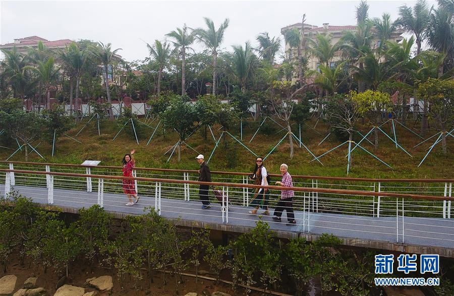 游客在海口市五源河国家湿地公园游玩(12月6日摄)。 新华社记者 杨冠宇 摄