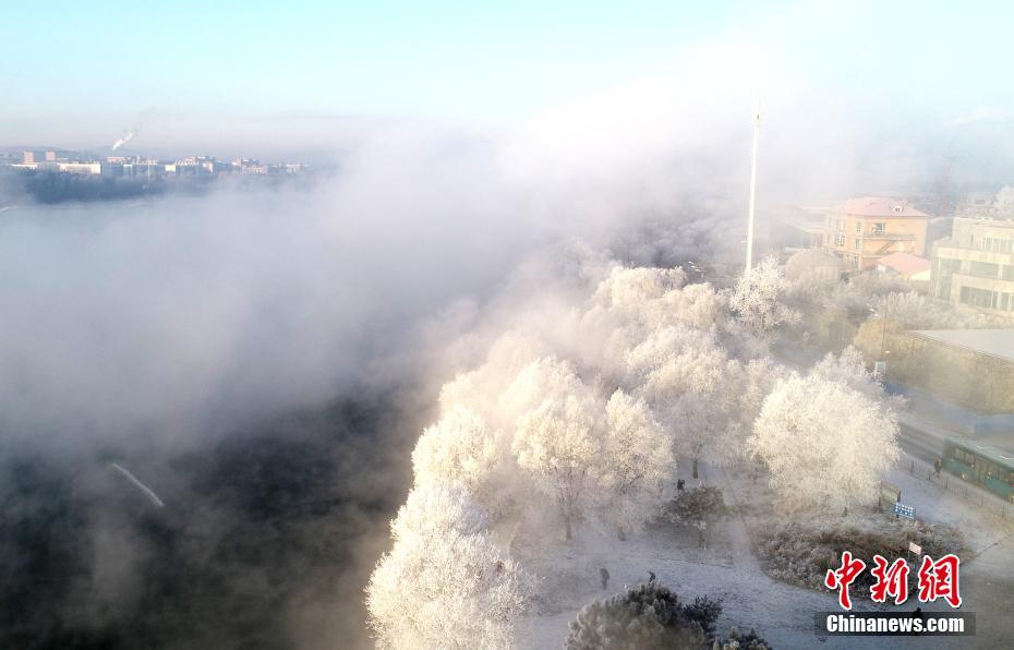 12月12日,吉林省吉林市松花江边的阿什哈达雾凇观赏带迎来了等级为“五颗星”的雾凇景观,吸引游客前来参观留念。当日,在吉林市旅发委发布的雾凇播报中将阿什哈达雾凇观赏带的雾凇景观评为“五星级”。中新社记者 张瑶 摄