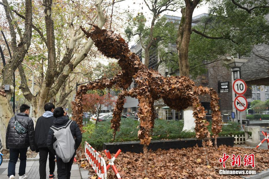 12月12日,以落叶装扮的巨型“蚂蚁”吸引行人的关注。近日,中国美术学院举办秋叶艺术节,众多以落叶设计的艺术作品亮相杭州西湖边,成为一道独特的风景。中新社记者 王刚 摄