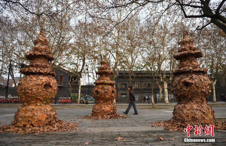 落叶艺术品成为杭州西湖独特风景