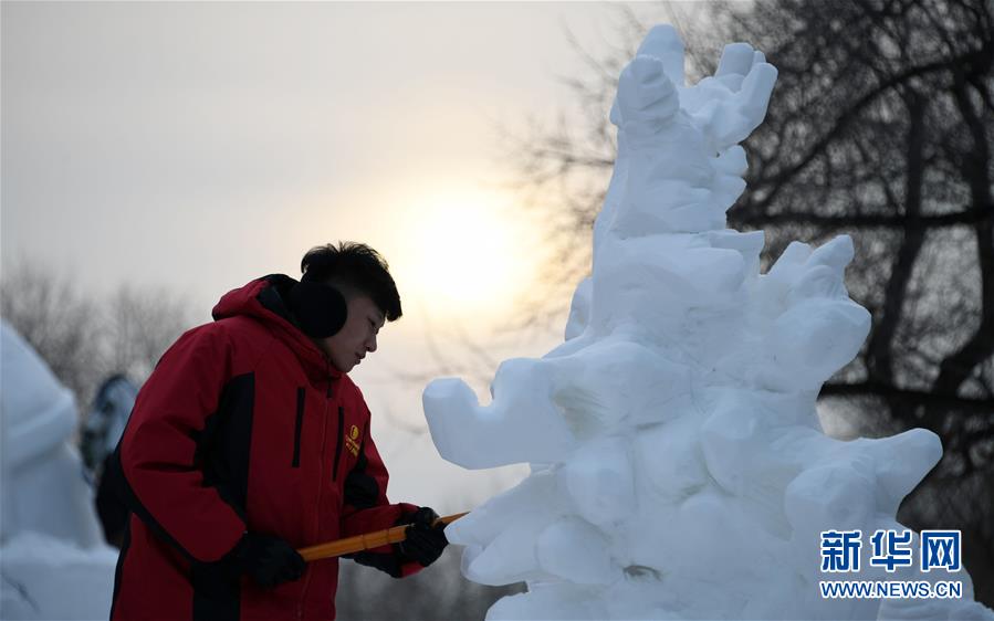 当日,为期4天的第六届“冬之韵”黑龙江省大学生雪雕比赛在哈尔滨太阳岛雪博会园区进行至第3天,35支高校队伍的作品尽显冬韵。