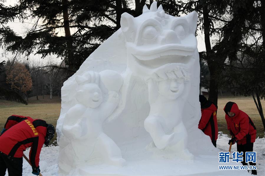 12月12日,选手在雪雕比赛创作中。 新华社记者 王建威摄