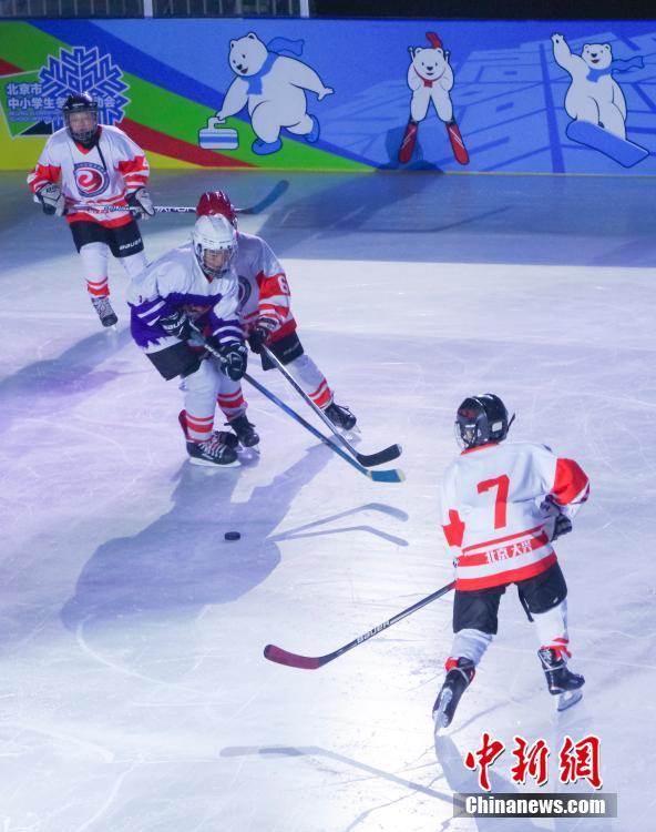 12月15日,北京市第三届中小学生冬季运动会开幕式暨阳光体育展示活动在北京奥众冰上中心举办。本届运动会由北京市体育局、北京冬奥组委新闻宣传部等主办,有来自全市近1400名师生参赛。在为期11天的比赛中,选手们将分别在5个分赛场全面展开较量。图为学生们在开幕式上进行冰球表演。中新社记者 贾天勇 摄