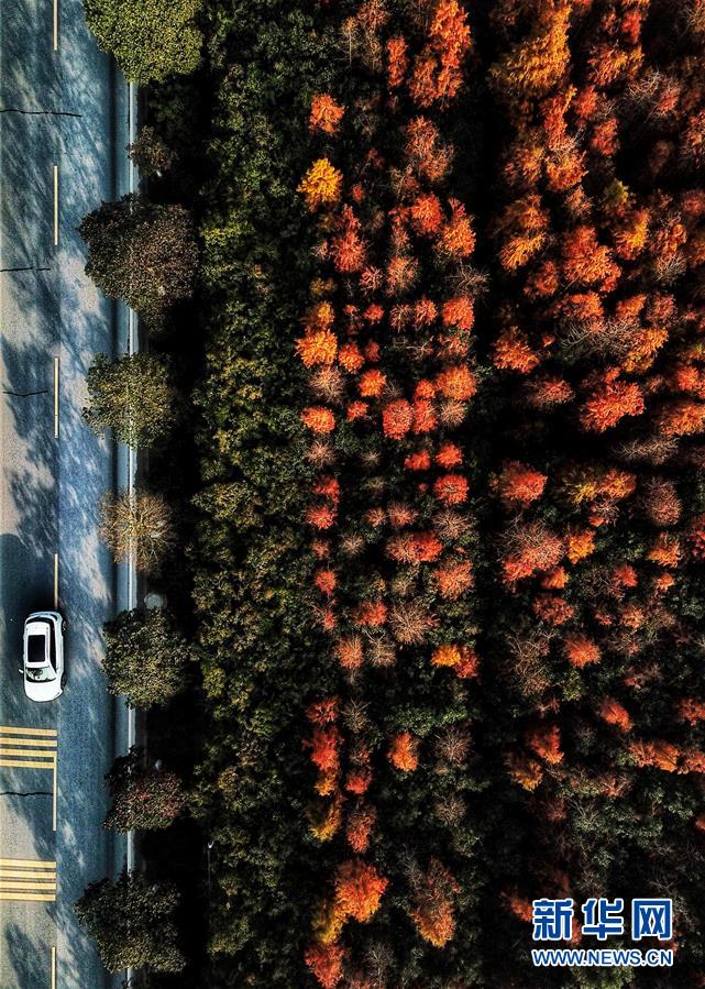 12月16日,在江西省南昌市南昌县蒋巷镇蒋巷村,车辆行驶在美丽的乡村公路上。笔直的乡村公路,整齐的多彩树林,在冬日暖阳的映衬下,构成了一幅美丽画卷。新华社发(徐铮 摄)