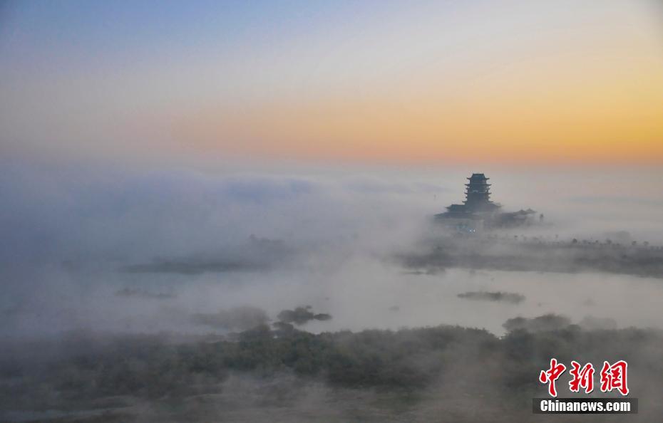 12月18日,航拍下的江西省上饶市铅山县河口镇平流雾景观。连日来,江西省南昌、九江、上饶等多地出现壮观平流雾景观,城市建筑在雾中若隐若现,宛如仙境。平流雾是当暖湿空气平流到较冷的下垫面上,下部冷却而形成的雾。平流雾多发生在冬春时节,能将城市中的建筑物“缠绕”其中,才使身处地面的人们觉得如临仙境。丁铭华 摄