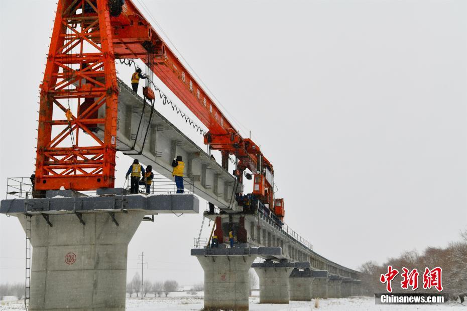 12月18日,拉萨下起今年入冬以来第一场大雪。在川藏铁路拉林(拉萨至林芝)段建设工地上,中铁十一局的工人们正顶风冒雪架设贡嘎雅鲁藏布江特大桥第128跨桥梁。川藏铁路拉林段全长435.48公里,贡嘎雅鲁藏布江特大桥是川藏铁路拉林段最长的桥梁,也是首座横跨雅鲁藏布江的桥梁,全长5727米。为确保实现既定工期目标,中铁十一局工人们雪中坚守施工现场。文/赵朗 俞文喜 图/俞文喜