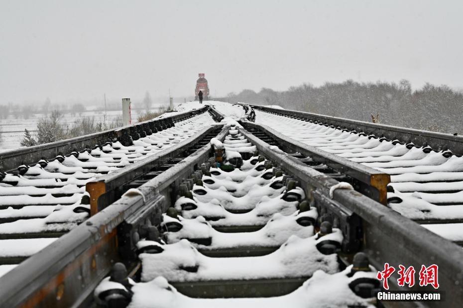 架桥机迎着风雪朝川藏铁路拉林段贡嘎车站而来。文/赵朗 俞文喜 图/俞文喜
