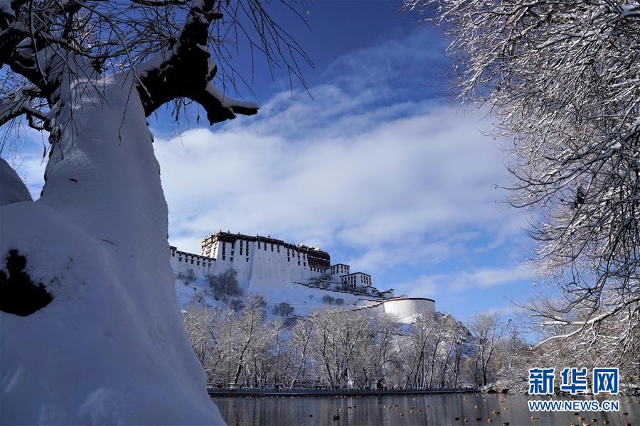 12月19日拍摄的雪后的布达拉宫。 12月18日,西藏拉萨市迎来今年入冬以来的首场降雪。19日清晨,拉萨雪后初霁,处处银装素裹,尽显雪域高原之美。 新华社记者普布扎西摄