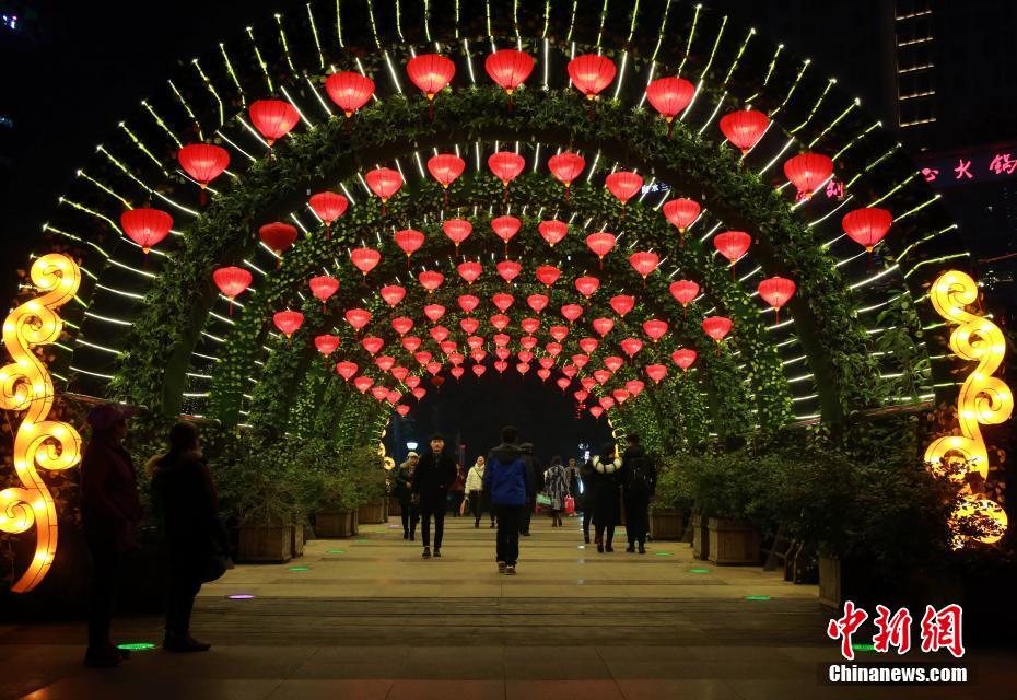 重庆迎春灯饰亮灯 灯光勾勒梦幻夜景