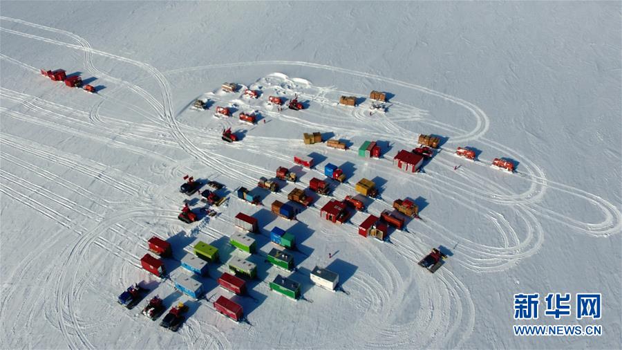 12月19日,中国第35次南极科考队泰山队和昆仑队向南极内陆腹地行进(无人机拍摄)。