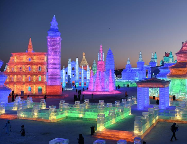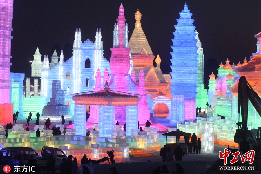 2018年12月23日,哈尔滨市冰雪旅游的重头戏——冰雪大世界试开园迎客,吸引许多中外游客前来参观。冰雪砌成的“童话王国”内,游人们尽情的玩着、乐着、拍下美丽的瞬间,尽情地感受北国冰雪的独特魅力。图片来源:东方IC