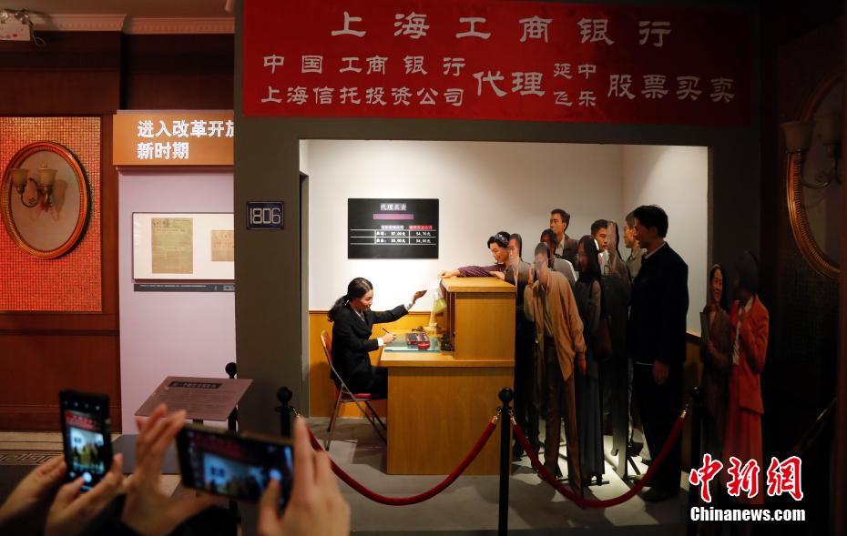 12月24日,民众在中国证券博物馆参观。中国首家证券博物馆日前在上海浦江饭店揭牌,馆内展览以场景还原、实物展陈以及多媒体展示等形式浓缩了中国资本市场改革开放的不平凡历程。图为场景还原当年买卖股票的盛况。汤彦俊 摄