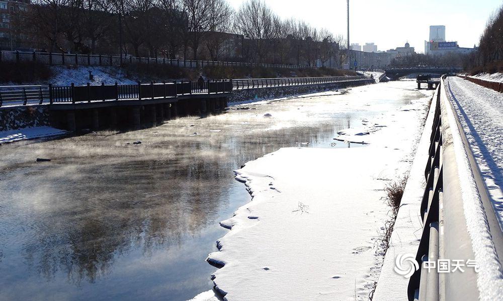 哈尔滨马家沟未封冻河面氤氲袅娜似仙境
