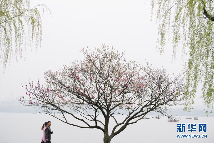 3月26日,游客在杭州西湖白堤上游览。在即将过去的2018年,各地摄影师用镜头记录下四季中国。大江南北,一幅幅色彩斑斓的美丽画卷徐徐展开。新华社记者翁忻旸摄