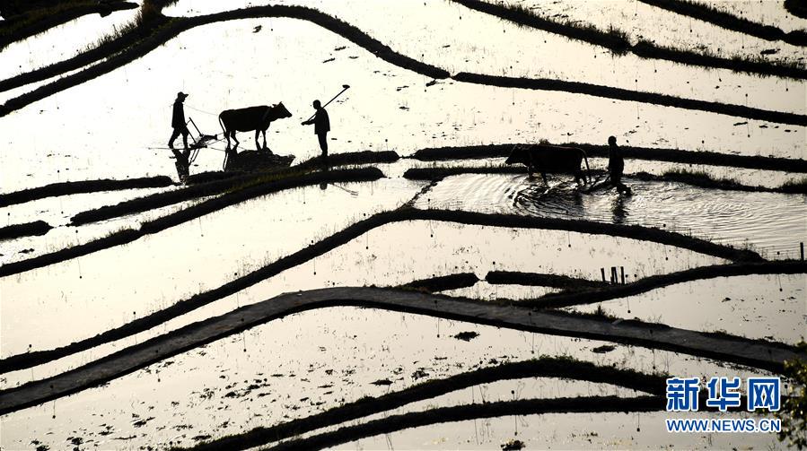 4月10日清晨,湖北省蕲春县雾云山村的农民在梯田劳作。在即将过去的2018年,各地摄影师用镜头记录下四季中国。大江南北,一幅幅色彩斑斓的美丽画卷徐徐展开。新华社记者程敏摄