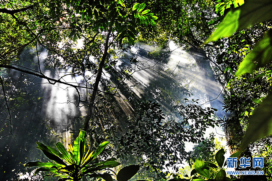 园内自然生态系统保护完整,主峰高1495米,原始林木种类达1400多种,国家重点保护珍贵树种如见血封喉、陆筠松等有27种,国家一、二级保护的动物有长臂猿、云豹、水鹿、穿山甲等十余种,是我国热带生物资源最丰富的地区之一。新华网发(陈益培摄)