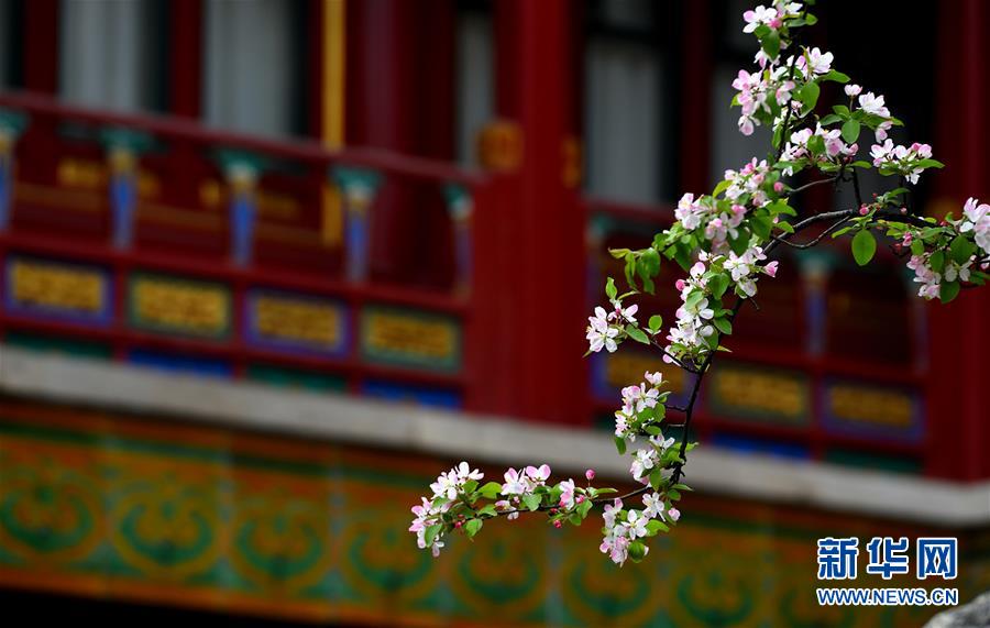 这是故宫内的海棠花(资料照片)。 故宫内的花草树木种类繁多。漫步紫禁城,总能在不经意间遇见红墙琉璃瓦映衬下的一抹姹紫嫣红。 新华社发