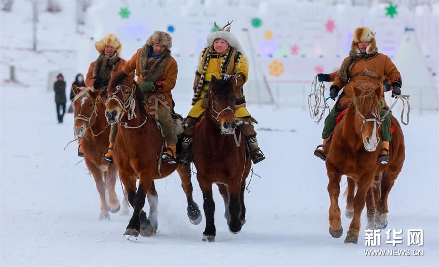 12月26日,马队在“伊萨仁”开幕式上表演。 当日,内蒙古呼伦贝尔市第五届鄂伦春冰雪“伊萨仁”在鄂伦春自治旗开幕。“伊萨仁”是鄂伦春语“集会”“聚会”的意思。此次“伊萨仁”期间,将举行鄂伦春徒步林海穿越、汽车越野拉力赛、冰雪观赏、雪上冲浪等活动,为游客带来不一样的冰雪体验。 新华社发(丁根厚 摄)