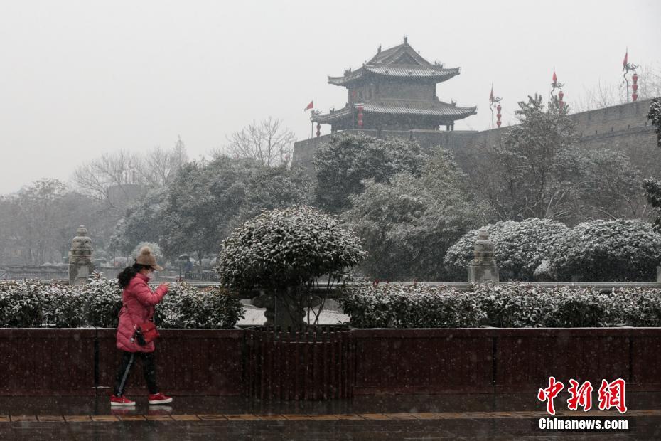 12月27日,西安市民雪中出行。当日,陕西关中、陕南大部地区迎来降雪降温天气。中新社记者 张远 摄