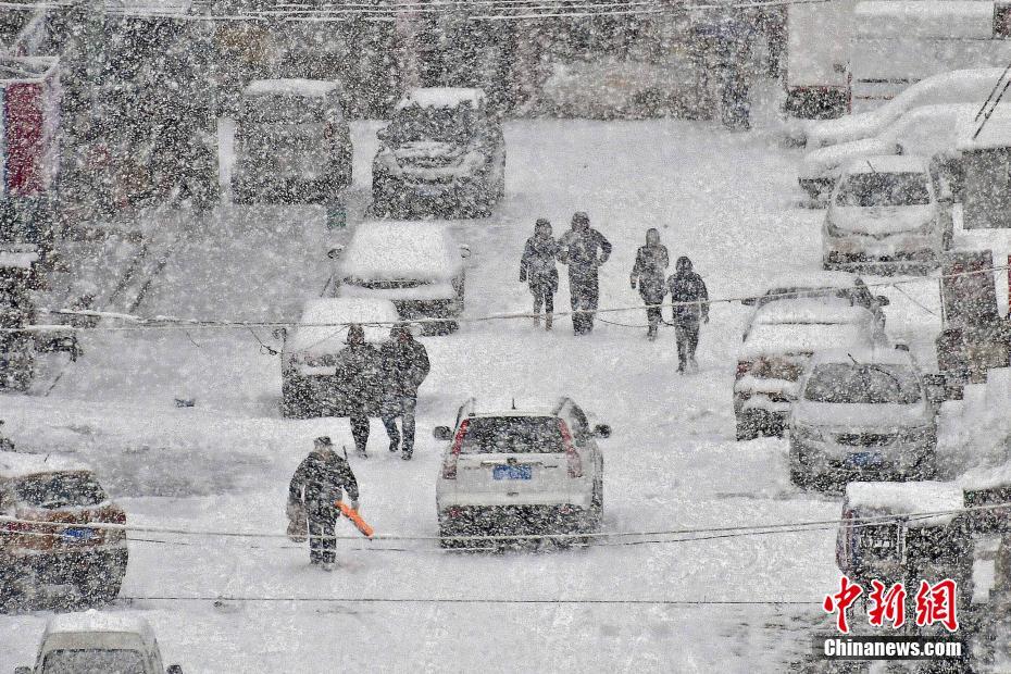 12月27日,因受冷空气影响,山东半岛多地迎来小到中雪局部大雪天气,最低气温达零下13摄氏度。图为行人在山东省烟台市福山区街头冒雪出行。中新社发 孙文潭 摄 图片来源:CNSPHOTO