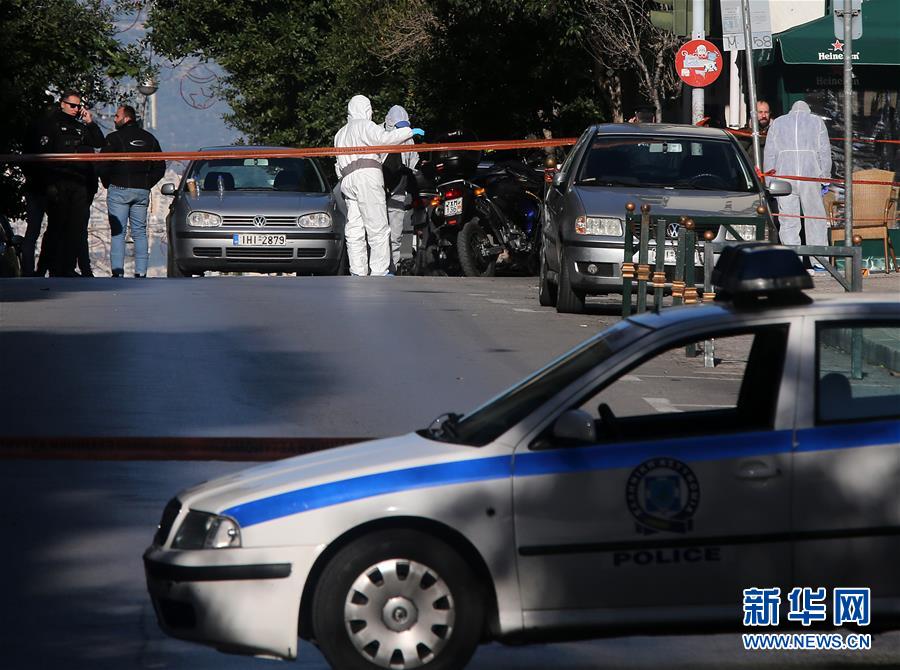 12月27日,在希腊雅典,警察封锁发生爆炸的教堂所在街道。新华社发(马里奥斯·罗洛斯摄)