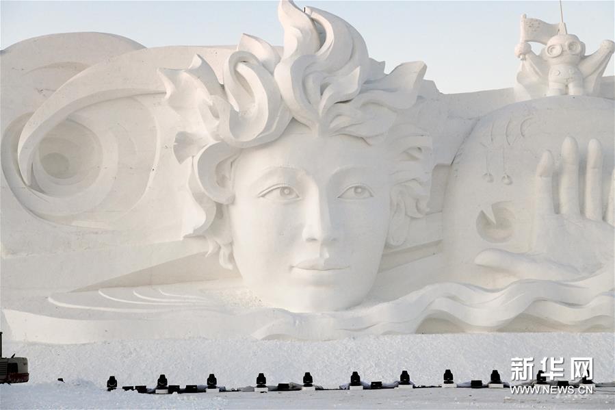 哈尔滨:雪博会大型主塑《星河之旅》落成迎客