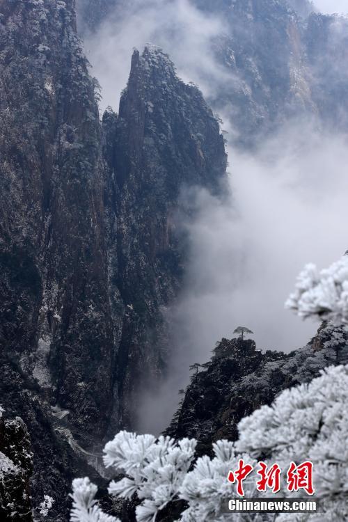 12月28日,受寒潮影响,安徽黄山风景区迎来降雪。皑皑白雪与奇松怪石交相辉映,美景如画。 中新社发 施广德 摄 图片来源:CNSPHOTO