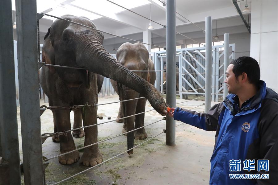 12月28日,宁波雅戈尔动物园的大象在开启电暖气的笼舍里进食。 近日,受较强冷空气影响,浙江宁波气温走低。当地动物园加强保暖措施,保证园区动物安然过冬。 新华社发(张培坚 摄)