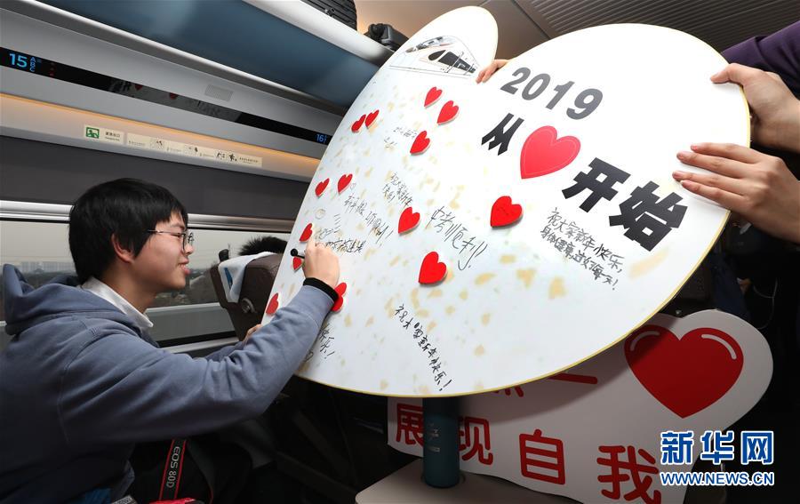 12月30日,一名旅客在展板上写下自己的新年祝福。 新华社记者 方喆 摄