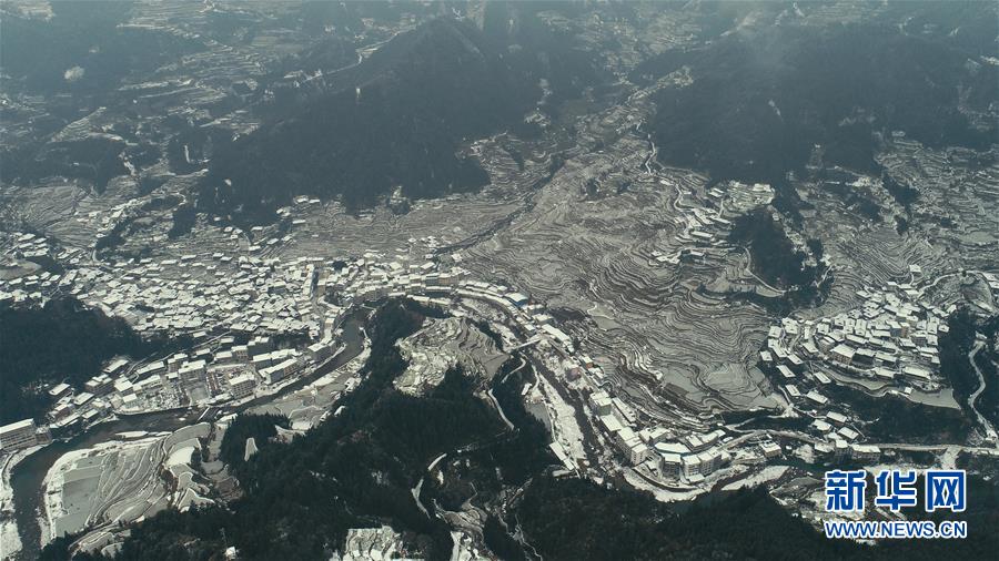 这是广西融水苗族自治县杆洞乡的雪景(12月30日无人机拍摄)。 新华社记者黄孝邦摄