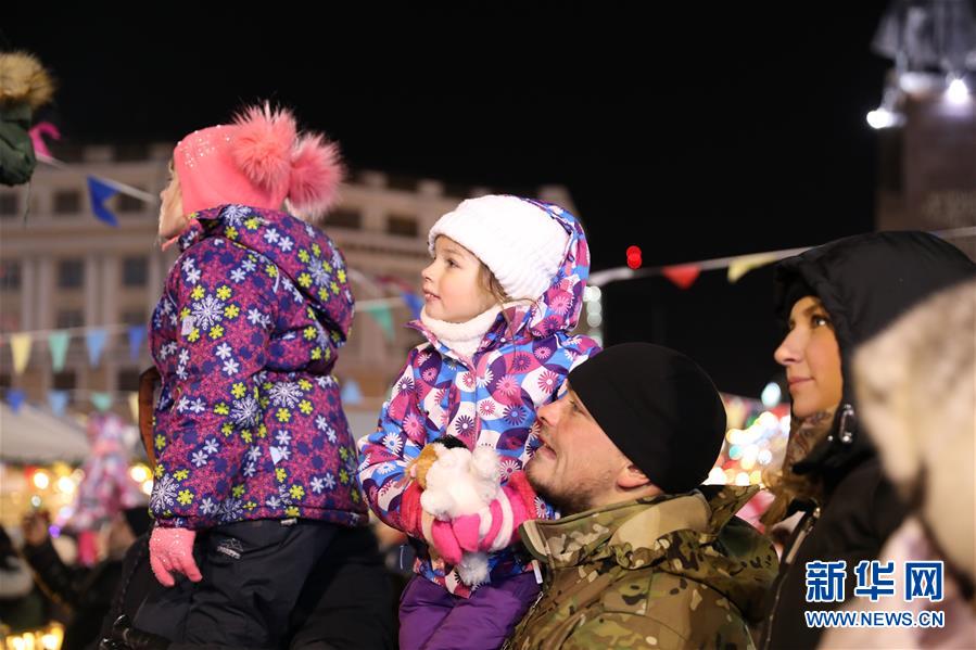 2018年12月31日,在俄罗斯符拉迪沃斯托克市,人们参加迎新年活动。 新华社记者吴刚 摄