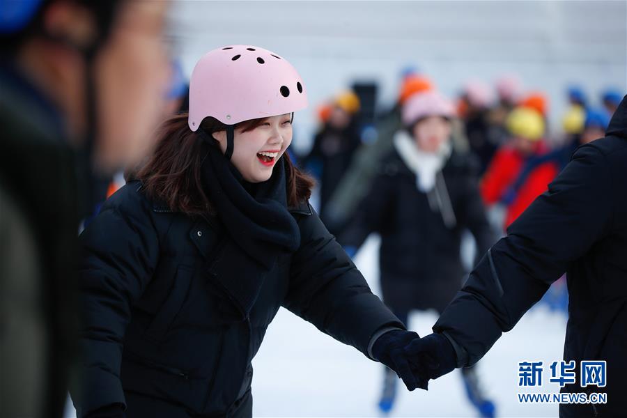 2018年12月31日,人们在韩国首尔广场体验滑冰带来的乐趣。 新华社记者王婧嫱摄