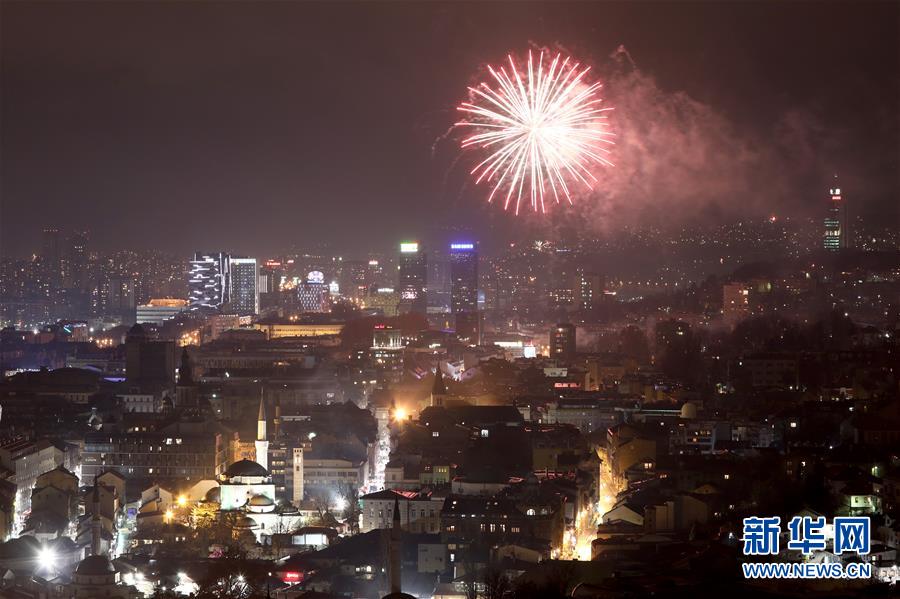 1月1日,烟花在波黑首都萨拉热窝上空绽放。 新华社发(内迪姆·格拉波维察 摄)
