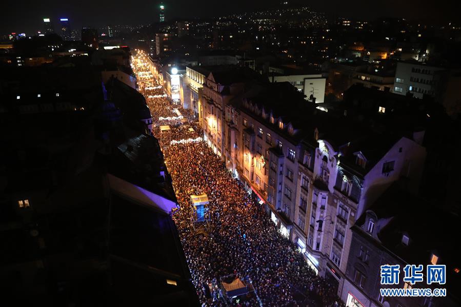 2018年12月31日,人们在波黑首都萨拉热窝参加跨年活动。 新华社发(内迪姆·格拉波维察 摄)