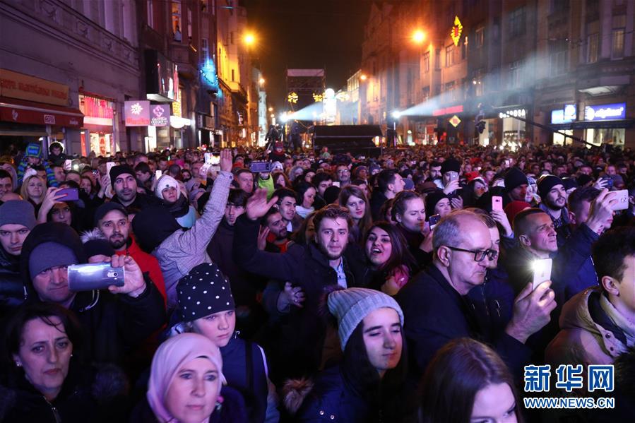 2018年12月31日,人们在波黑首都萨拉热窝参加跨年活动。 新华社发(内迪姆·格拉波维察 摄)