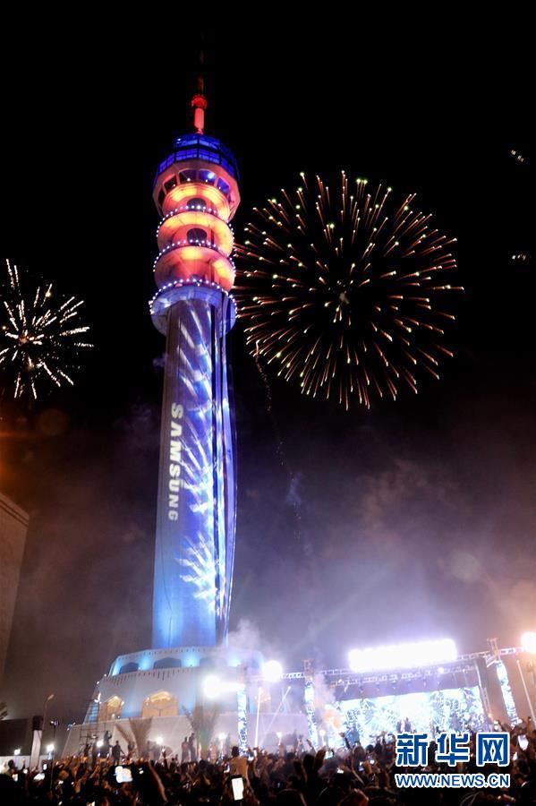 1月1日,庆祝新年的烟花在伊拉克巴格达城市上空绽放。 新华社发(哈利勒·达伍德摄)