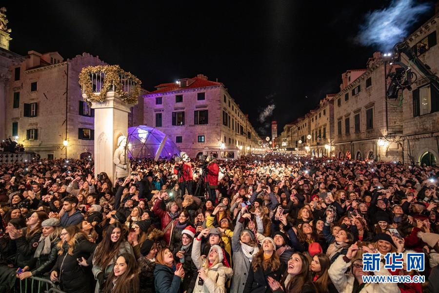1月1日,在克罗地亚南部的杜布罗夫尼克,人们在旧城内参加新年庆祝活动。 新华社发(格尔戈·耶拉维奇摄)