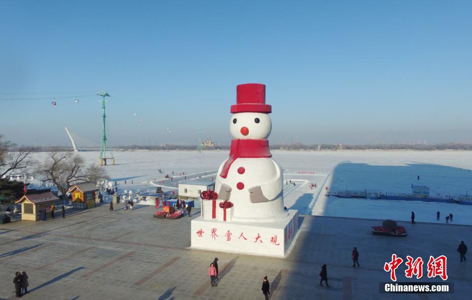 “雪人大观”亮相松花江畔 20米高超大雪人吸引游客