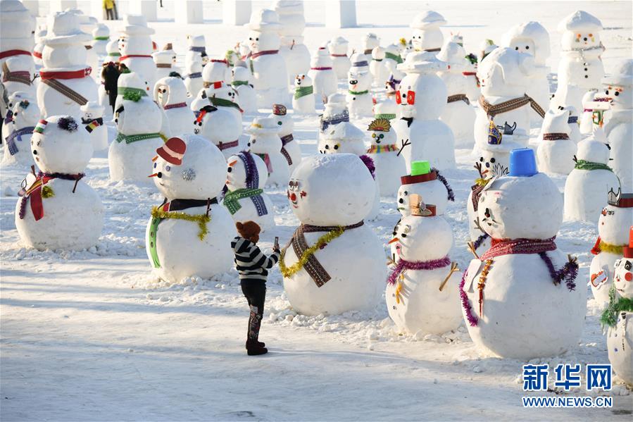“雪人大观”亮相松花江畔 20米高超大雪人吸引游客