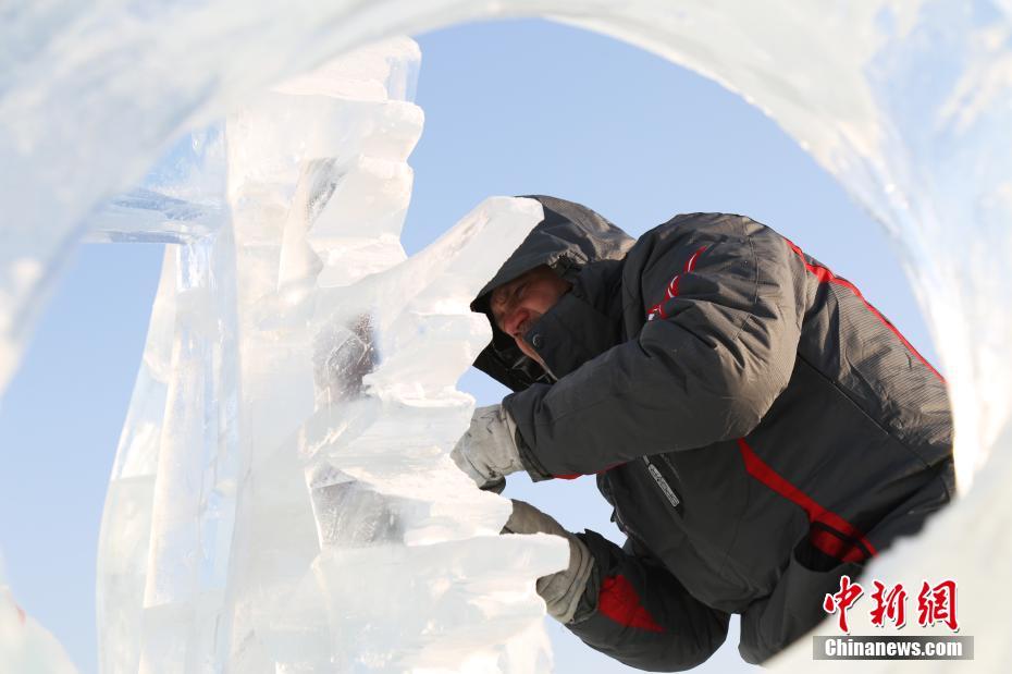1月3日,选手在哈尔滨冰雪大世界内制作冰雕。当日,参加第八届中国哈尔滨国际组合冰雕比赛的各国选手在哈尔滨冰雪大世界继续展开角逐。本届比赛有来自中国、西班牙、意大利、俄罗斯等12个国家和地区的16支代表队、64名队员参赛。 中新社记者 吕品 摄