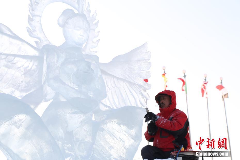1月3日,选手在哈尔滨冰雪大世界内制作冰雕。当日,参加第八届中国哈尔滨国际组合冰雕比赛的各国选手在哈尔滨冰雪大世界继续展开角逐。本届比赛有来自中国、西班牙、意大利、俄罗斯等12个国家和地区的16支代表队、64名队员参赛。 中新社记者 吕品 摄