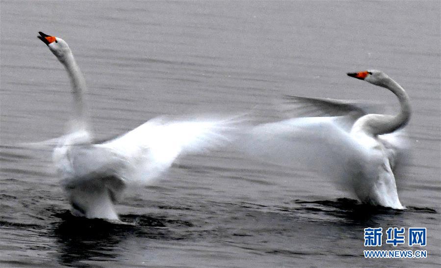 1月4日在三门峡黄河湿地拍摄的白天鹅。 新华社记者王丁摄