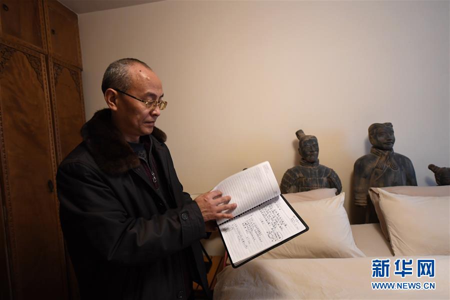 1月4日,兵马俑主题民宿经营者郭志华翻看住客留言本。 新华社记者 李一博 摄