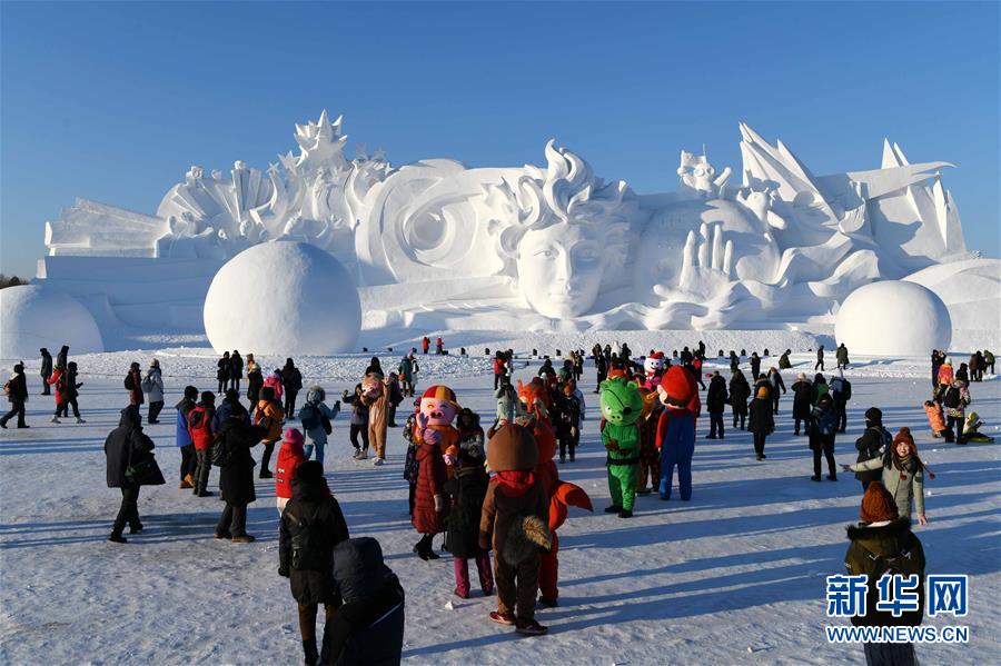 游客在哈尔滨太阳岛雪博会游玩(2018年12月29日摄)。 新华社记者 王建威 摄