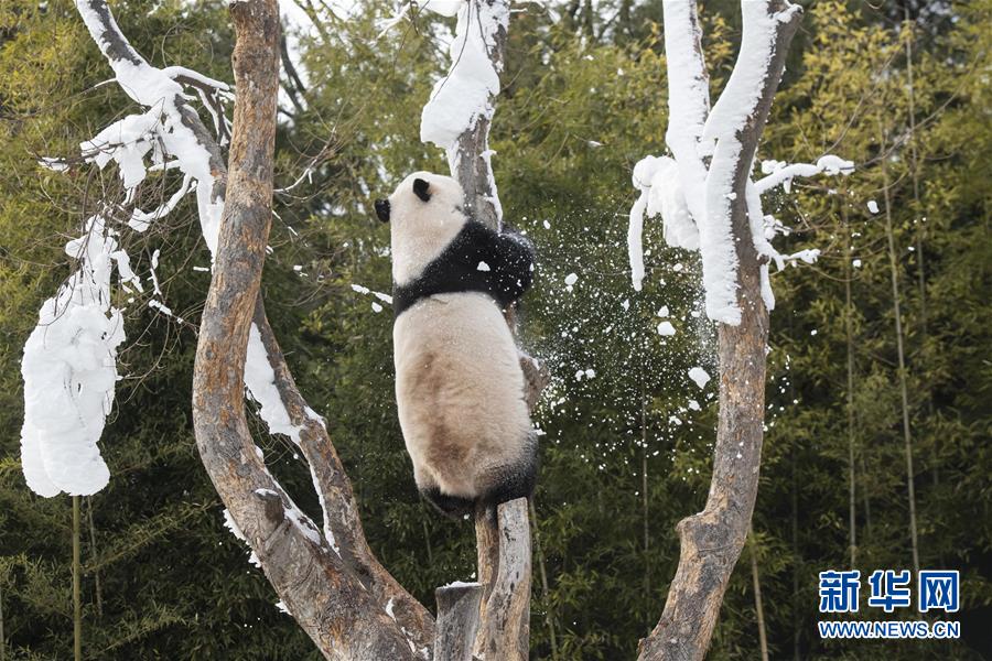 1月15日,在韩国京畿道龙仁市的爱宝乐园“熊猫世界”,大熊猫“爱宝”在树上玩耍。
